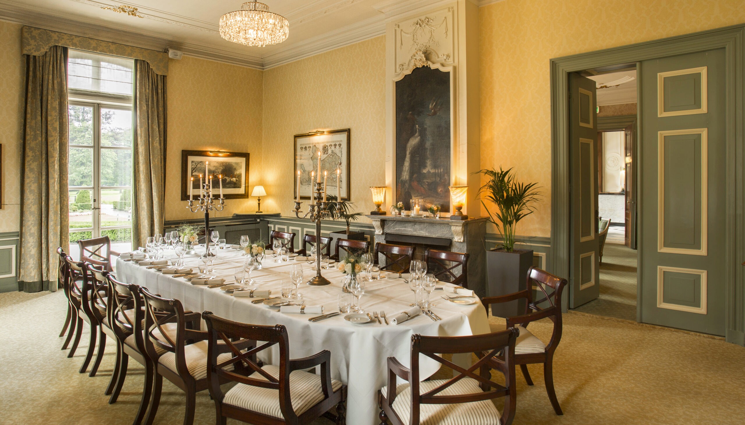 Achter monumentale deuren liggen zes karaktervolle zalen, elk met een naam die verwijst naar het rijke verleden van het kasteel. Hier vergader je in rust, privacy en stijl omringd door historie, maar voorzien van eigentijdse gemakken. Ideaal voor strategische sessies, presentaties of intieme boardmeetings tot 120 gasten.