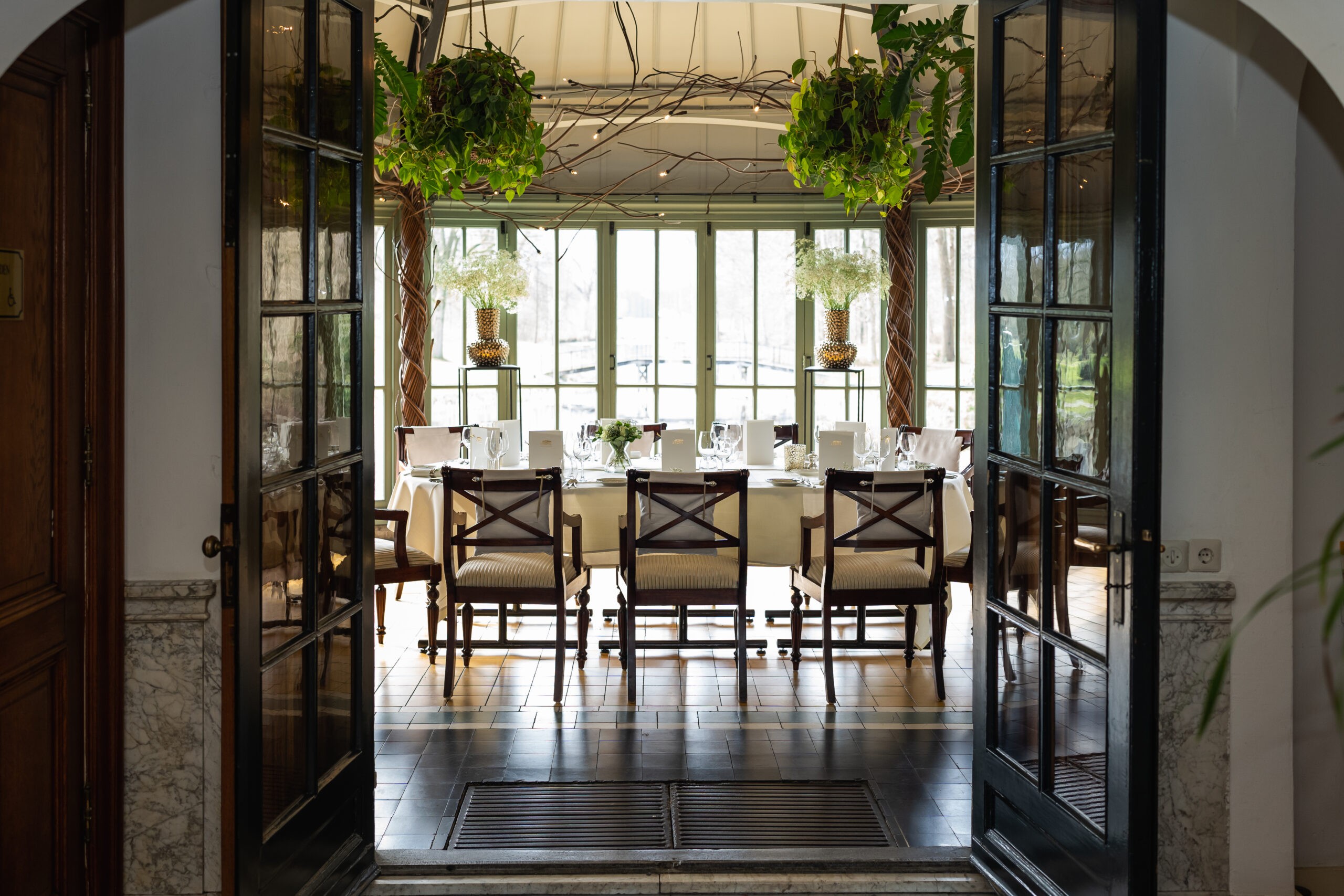 De salons van Kasteel Engelenburg vormen het kloppend hart van het landgoed. Denk aan hoge plafonds, kroonluchters en statige schouwen. Een tijdloos decor voor een ontvangst, diner of ceremonie. Elke ruimte ademt zijn eigen sfeer, maar samen vertellen ze het verhaal van gastvrijheid met klasse.